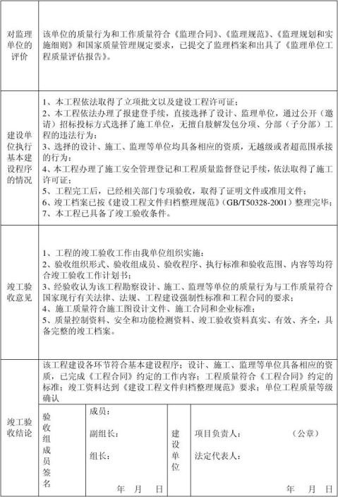 4,报告须经建设,设计,施工,工程监理等单位参加验收的所有人员签字,建设单位在封面加盖单位公章后方为有效.